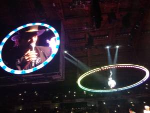 A minha falta de entusiasmo talvez se deva à idade. Afinal apaixonei-me por eles aos 14 e já estou perto dos 40. Ou talvez seja precisamente porque o tempo também está a passar por eles e por todos os fãs que assistem aos seus concertos. É que, ao contrário de certos artistas (estou a lembrar-me do Bowie ou do Sting) que andam nisto há décadas, os U2 sofrem do fenómeno dimensão. Foram crescendo e crescendo, de banda rock com influências punk, até ao patamar de super banda comercial, fazendo tournées sempre mais elaboradas e cheias de inovações tecnológicas. No entanto, a sua música está longe de se ter reinventado e readaptado, levando a que os fãs sejam os mesmos há mais ou menos 25 anos. Fiéis, entusiasmados, mas cada vez menos enérgicos.