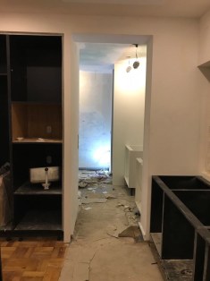 Em menos de dois meses o projecto de arquitectura estava pronto, que foi a parte mais fácil de todo o processo, apesar das discussões acerca do que eu via nas revistas e no Pinterest e a realidade possível perante o budget que tínhamos para gastar e as leis da física. Não sei se por me conhecerem bem, ou simplesmente por serem mesmo muito talentosos, os arquitectos Rodrigo Silva e João Pedro Cândido conseguiram integrar todos os nossos pedidos e criar, num apartamento típico dos anos 1960, daqueles com porta de serviço e quarto para a empregada, um espaço contemporâneo e funcional, com sala e cozinha em open space, lavandaria e uma suite com walk-in closet, as únicas três exigências das quais não queríamos abdicar.