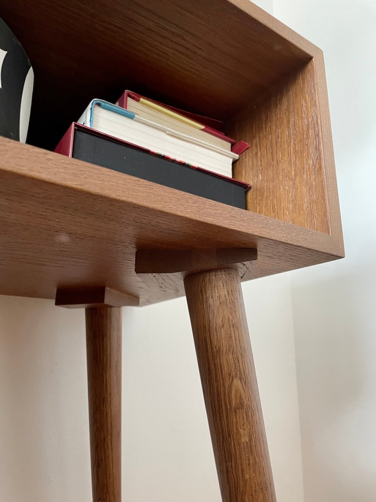 Estava quase a desistir, fui mais uma vez ao OLX à procura de uma peça vintage, até que encontrei a Baimabenda. Mesa de cabeceira estilo nórdico em madeira. Aos meus olhos revelou-se a imagem que eu tinha na cabeça com a vantagem de cumprir todos os requisitos que eu me tinha imposto: feito em Portugal, pequena empresa familiar, materiais nobres, preço muito justo.