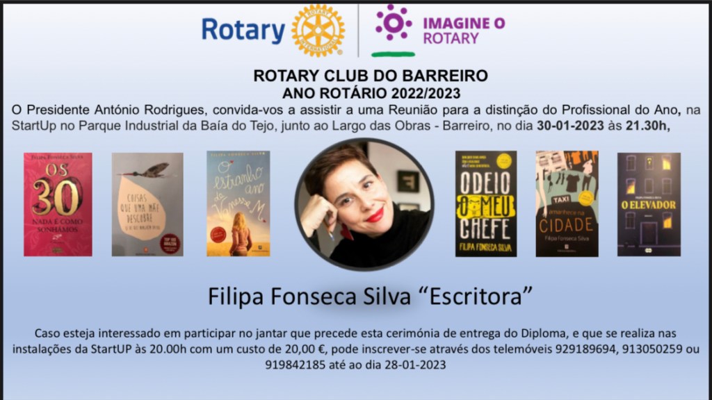 Foi com muito orgulho e gratidão que recebi a notícia de ter sido eleita Profissional do Ano pelo Rotary Club do Barreiro. Qualquer distinção deste tipo é motivo de orgulho, claro, mas vinda deste clube tem um gosto muito especial.